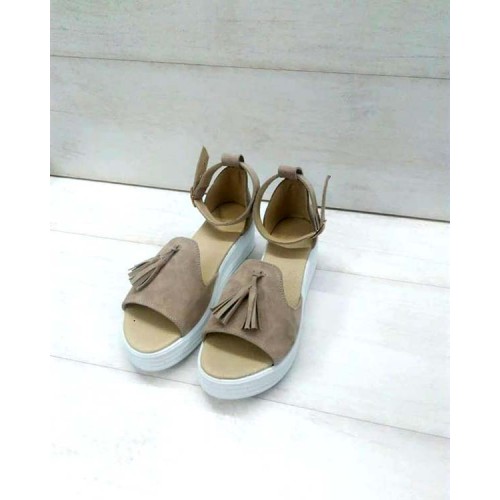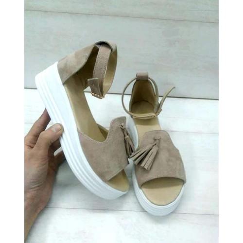 Купить качественные недорогие женские босоножки замшевые на платформе коричневые/бежевые в Харькове магазин фламода. Доставка по всей Украине. Интернет магазин flamoda.com.ua