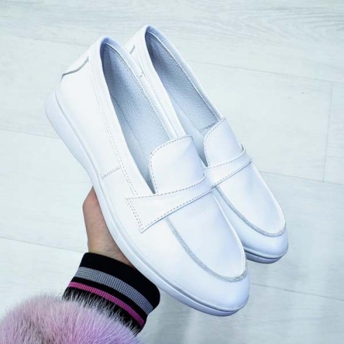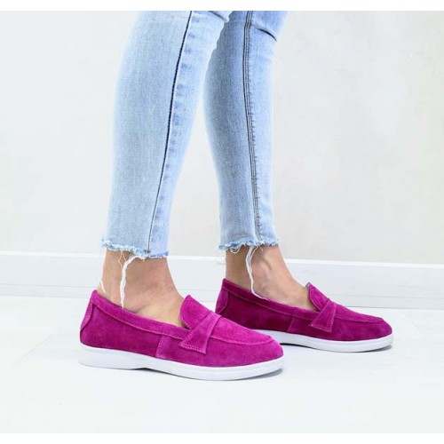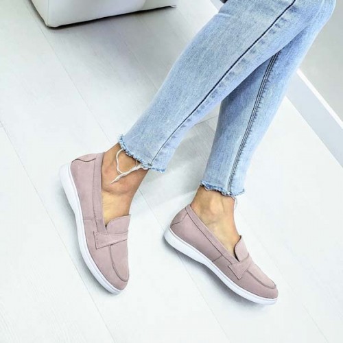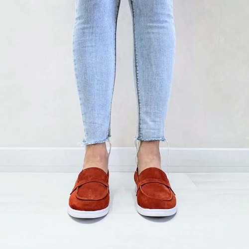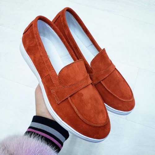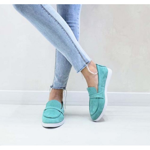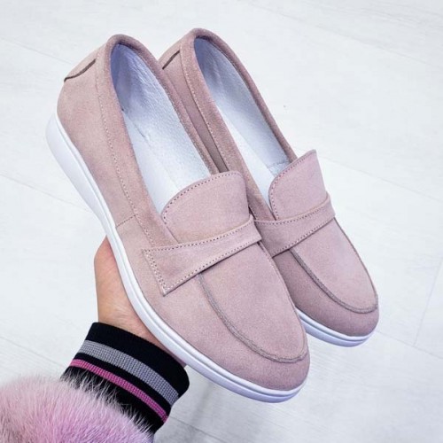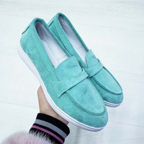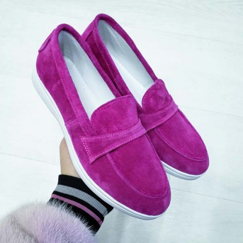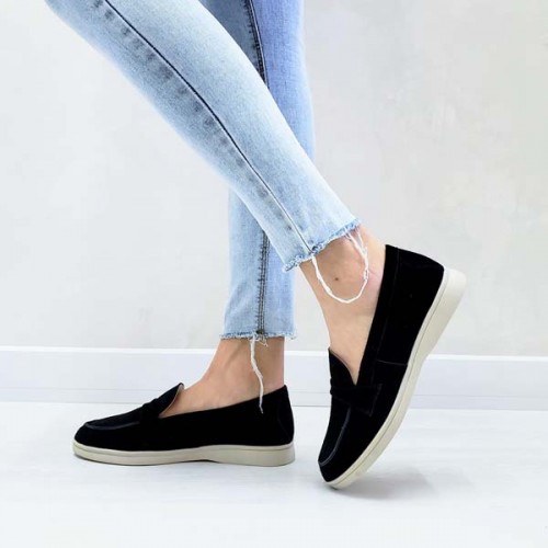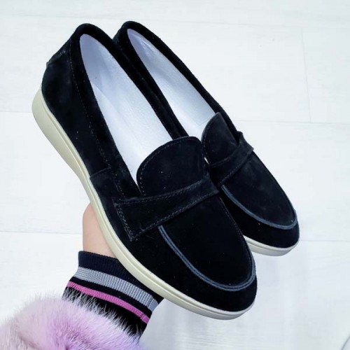 Туфли женские без каблука Лоферы кожа/замша 0069БНМ