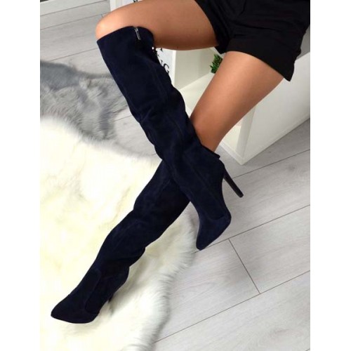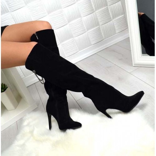 Сапоги-ботфорты женские на шпильке деми кожа/замша 1419ТОПС
