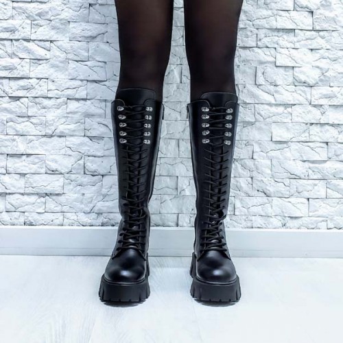 Женские ботинки высокие на толстой подошве осень/зима 0077БНМ