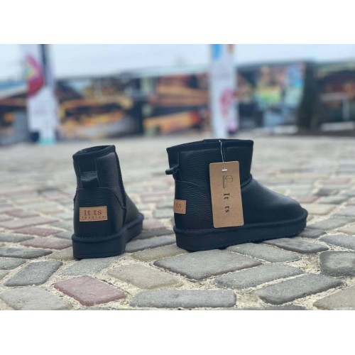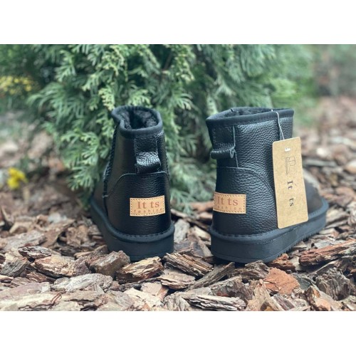 Короткие женские угги зимние натуральные черные 0087КФМ