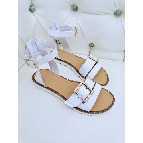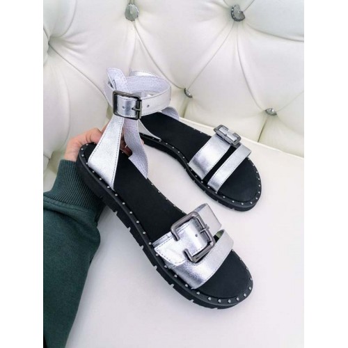 Босоножки на низком ходу кожа серебро и белые 34-42 размер 0506БНМ