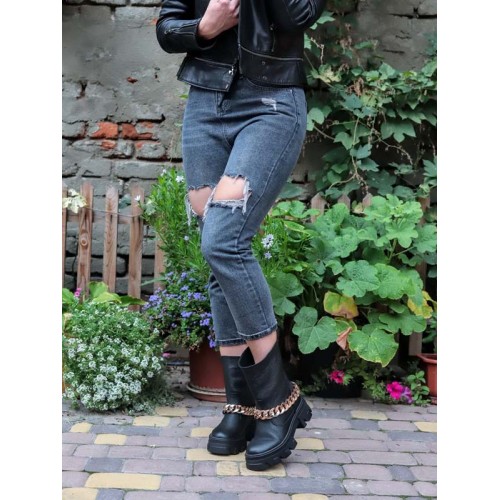 Женские ботинки кожа цепочка 35-40 р-ры 0111БНМ