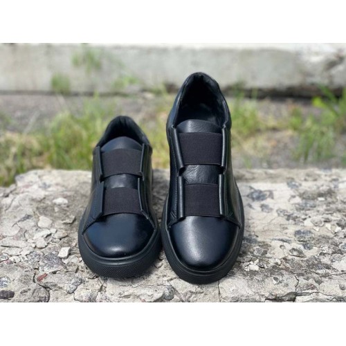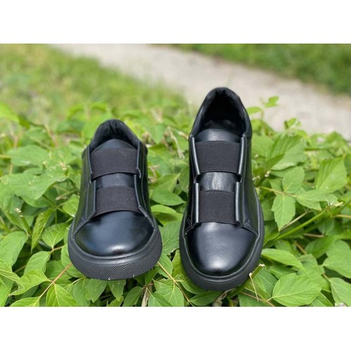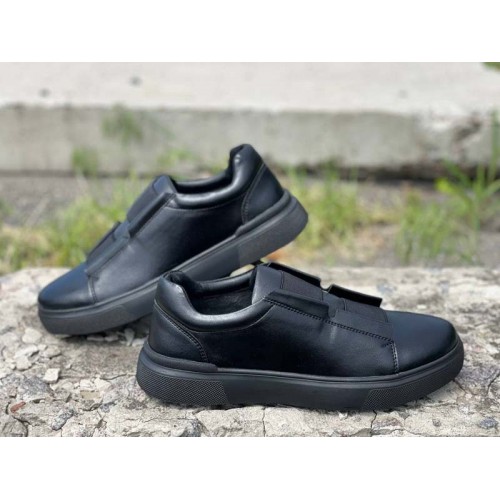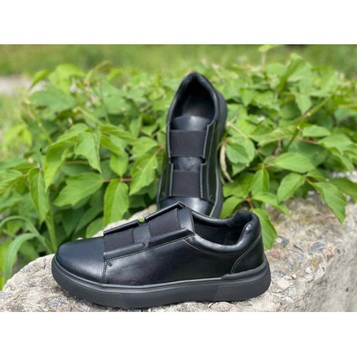 Туфли мужские на резинке кожа натуральная черные 0742УКМ