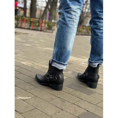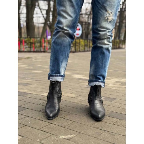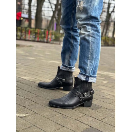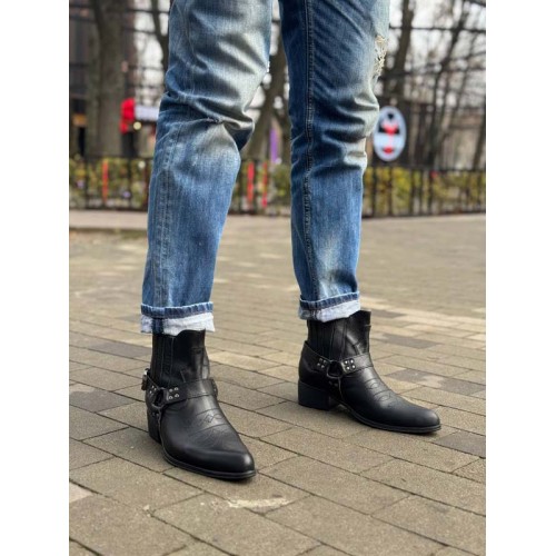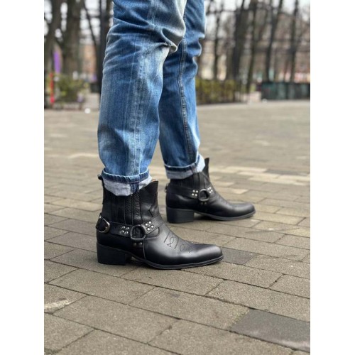 Ботинки-казаки мужские зимние кожа, натуральный мех черные 0035БМ