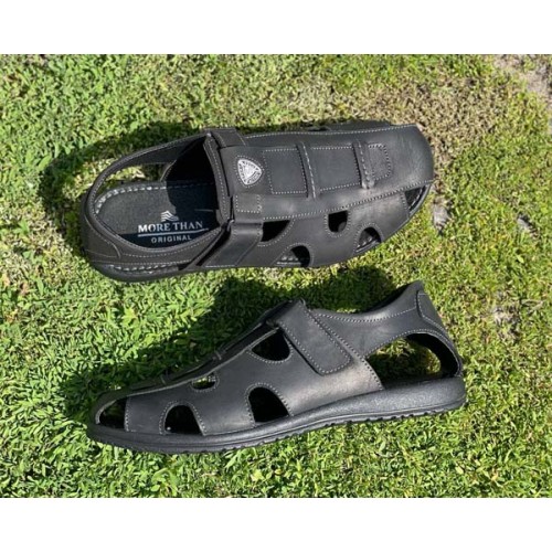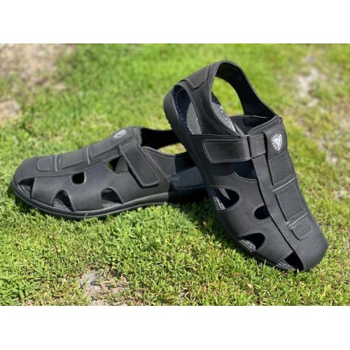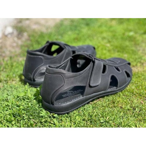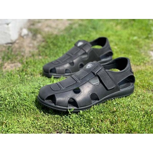 Купить качественные недорогие летние мужские босоножки на липучке кожаные, внутри кожа, черные магазин фламода в Харькове. Доставка по всей Украине. Интернет магазин flamoda.com.ua