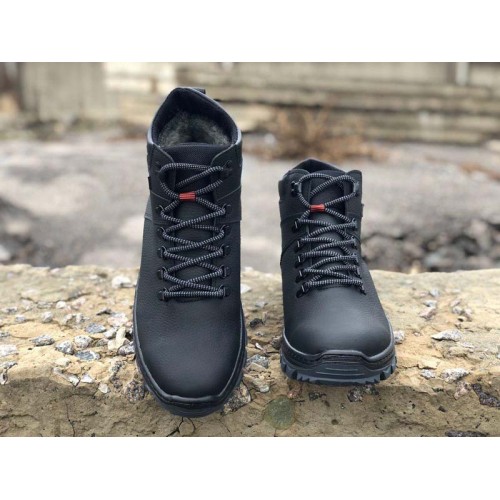 Купить качественные недорогие мужские ботинки из натуральной кожи зимние, внутри 100% мех шерстяной, цвет: черный в Харькове магазин фламода. Доставка по всей Украине. Интернет магазин flamoda.com.ua