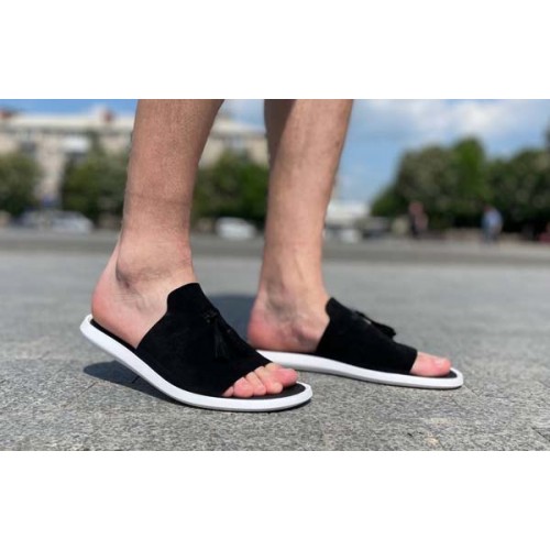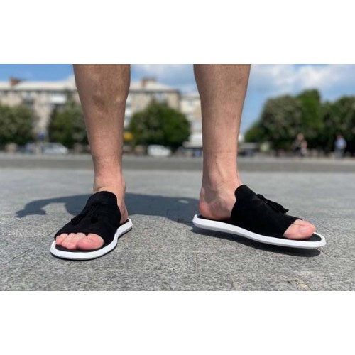 Купить качественные недорогие замшевые шлепки мужские черные в Харькове магазин фламода. Доставка по всей Украине. Интернет магазин flamoda.com.ua