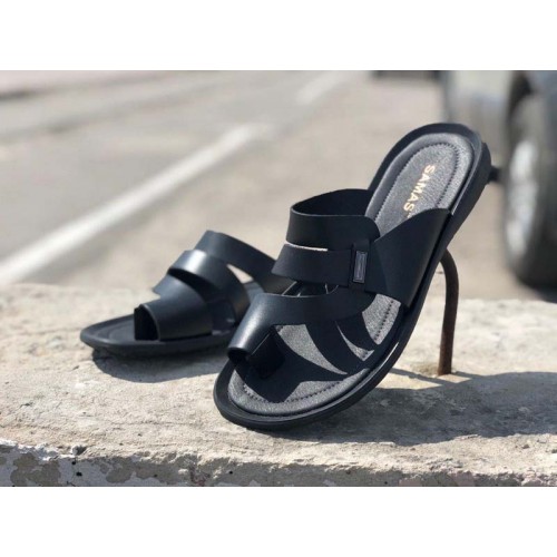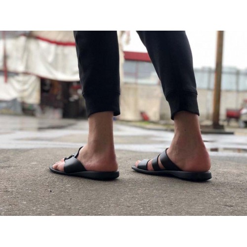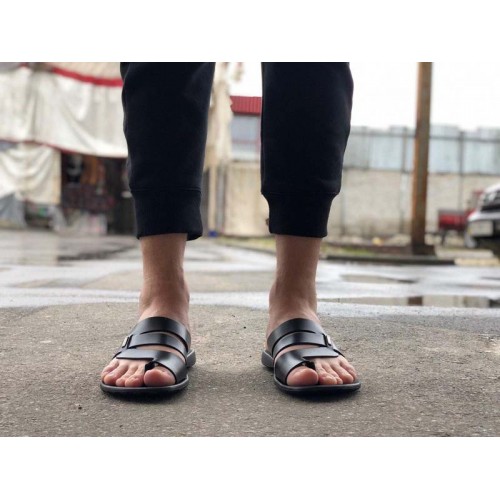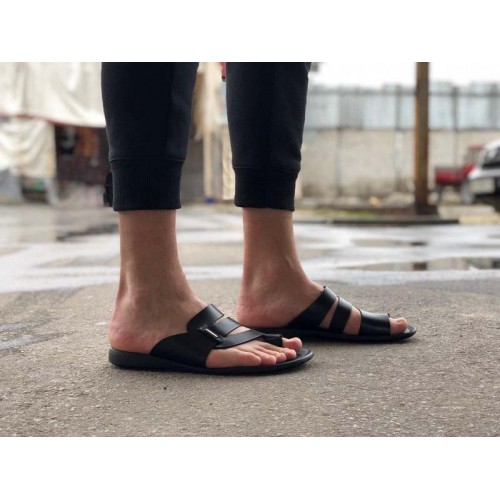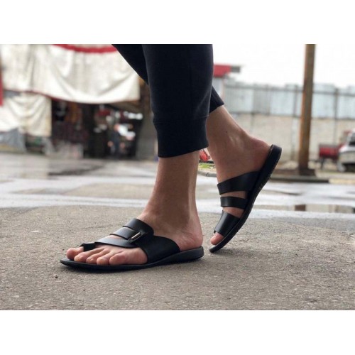 Купить качественные недорогие кожаные шлепки мужские, внутри кожа, цвет: черный в Харькове магазин фламода. Доставка по всей Украине. Интернет магазин flamoda.com.ua