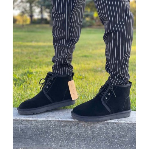 Купить качественные, недорогие угги мужские натуральная замша низкие на шнурках черные магазин Фламода в Харькове. Доставка по всей Украине. Интернет магазин flamoda.com