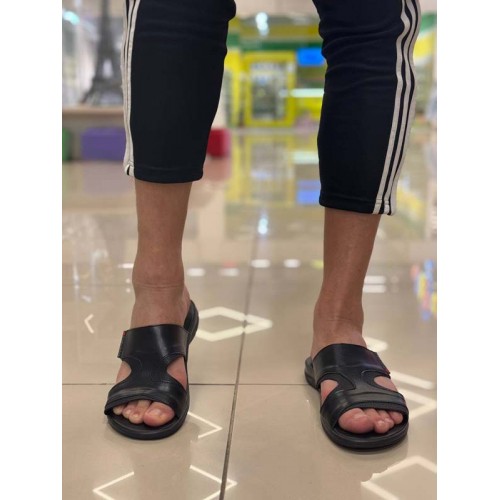 качественные недорогие кожаные шлепки мужские, внутри кожа, цвет: черный