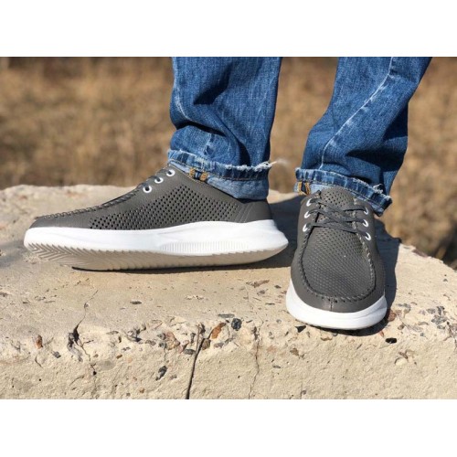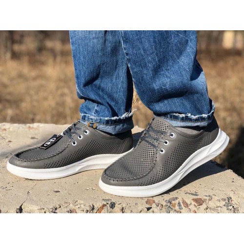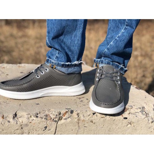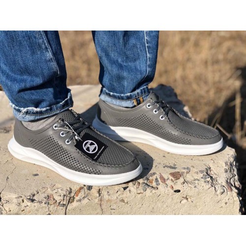 Купить качественные недорогие серые мокасины мужские кожаные с перфорацией, внутри кожа, стелька кожа в Харькове магазин фламода. Доставка по всей Украине. Интернет магазин flamoda.com.ua