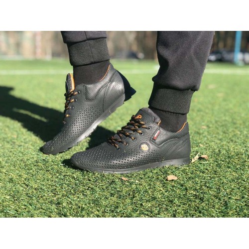 Купить качественные недорогие туфли мужские летние спортивные натуральная кожа, внутри кожа, стелька кожа, цвет: черные в Харькове магазин фламода. Доставка по всей Украине. Интернет магазин flamoda.com.ua