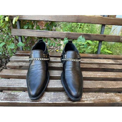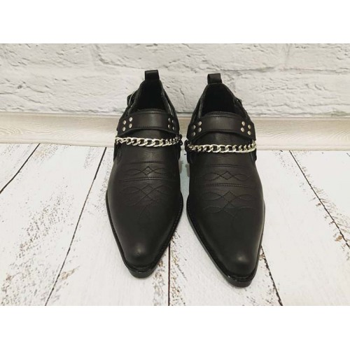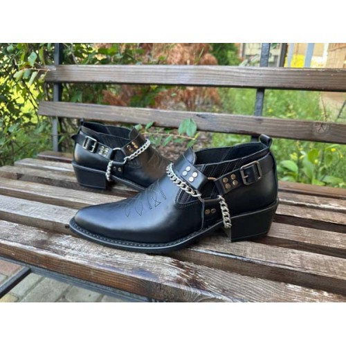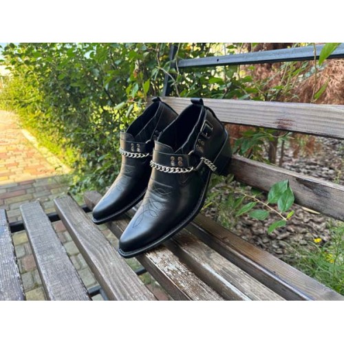 Купить качественные недорогие туфли казаки мужские демисезонные, внутри кожа черные в Харькове магазин фламода. Доставка по всей Украине. Интернет магазин flamoda.com.ua