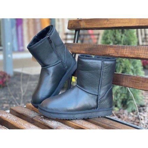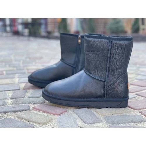 Купить качественные недорогие мужские угги натуральная кожа. Сбоку на молнии. Внутри толстый шубный мех. Очень теплые. Цвет: черный в Харькове магазин фламода