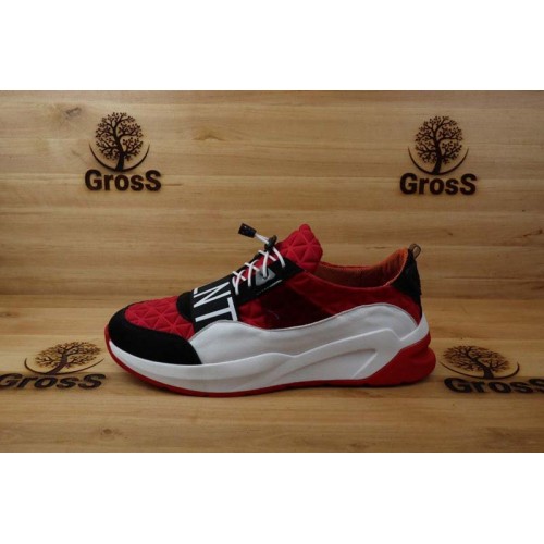 Купить качественные недорогие кроссовки мужские  натуральная кожа+замша, внутри кожа, цвет: красный в Харькове магазин фламода. Доставка по всей Украине. Интернет магазин flamoda.com.ua