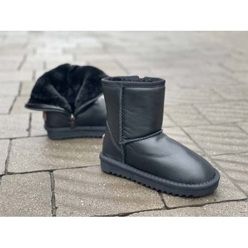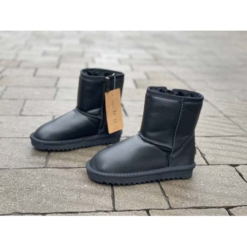 Купить угги детские натуральные UGG кожаные чёрные/синие. Доставка по всей Украине. Интернет магазин flamoda.com.ua