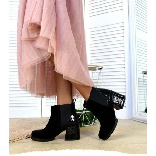 Ботильоны демисезонные на каблуке замша и кожа 2565ТОПС