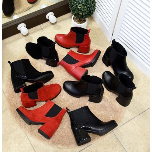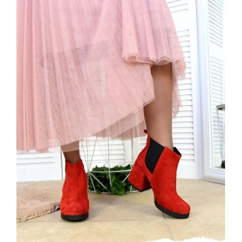 Купить качественные недорогие демисезонные ботильоны на каблуке Натуральная замша и кожа + стрейчевая резиночка, внутри флис, высота 10 см, каблук 7,5 см, цвет – красный, черный в Харькове магазин фламода. Доставка по всей Украине. Интернет магазин flamoda.com.ua