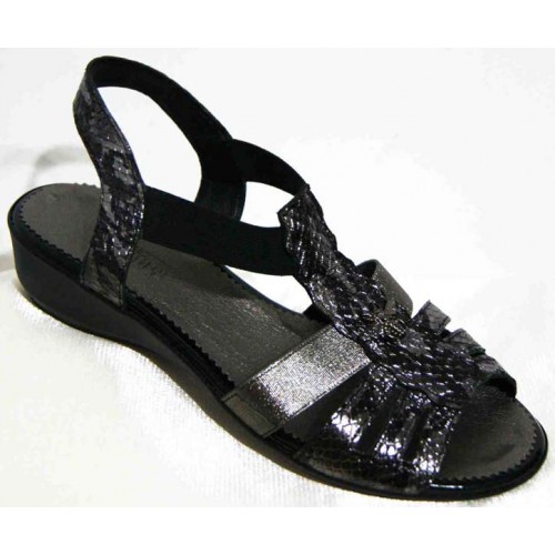 Купить качественные недорогие кожаные женские босоножки открытые без каблука полностью натуральные, цвет: черный, серебро в Харькове магазин фламода. Доставка по всей Украине. Интернет магазин flamoda.com.ua