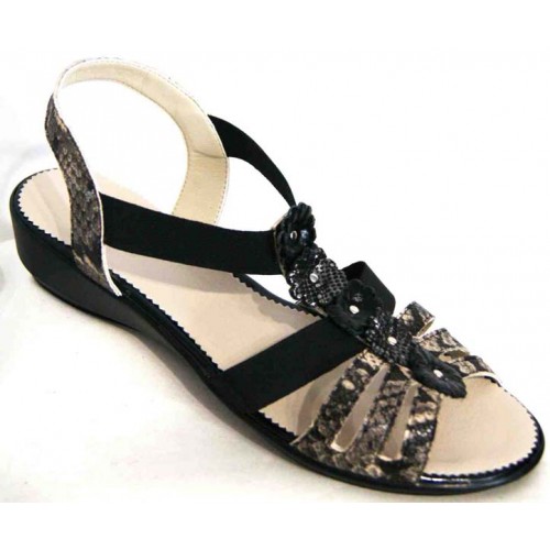 Купить качественные недорогие кожаные женские босоножки открытые без каблука полностью натуральные, цвет: черно-синий, черно-бежевый в Харькове магазин фламода. Доставка по всей Украине. Интернет магазин flamoda.com.ua
