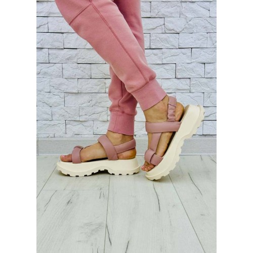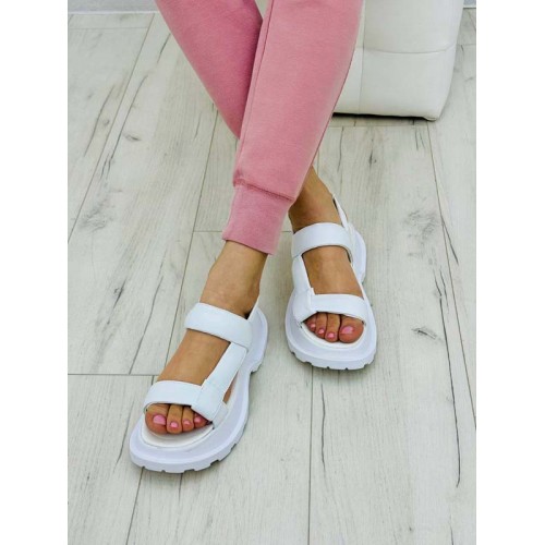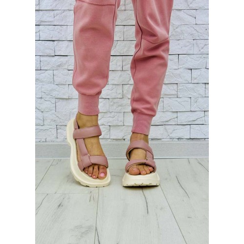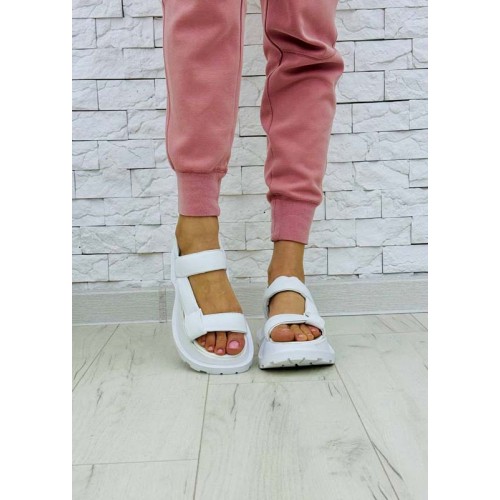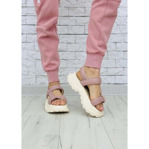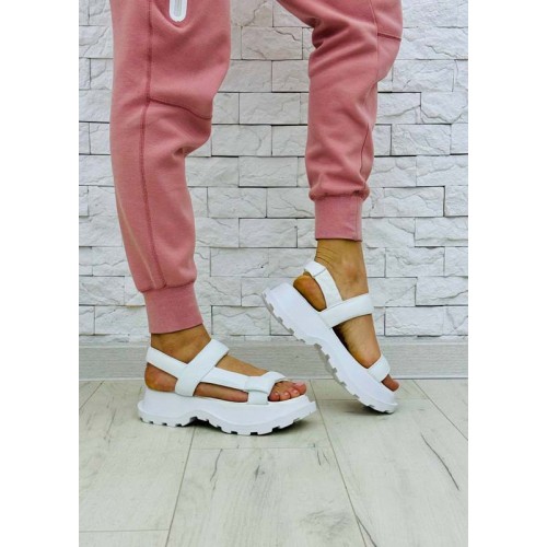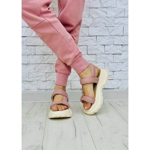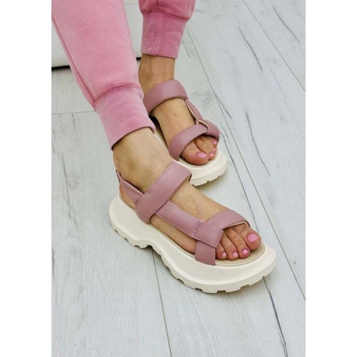 Кожаные босоножки женские без каблука черные, пудра и белые 3004БНМ