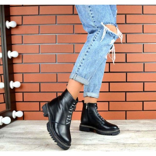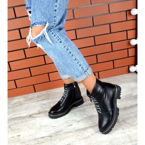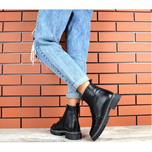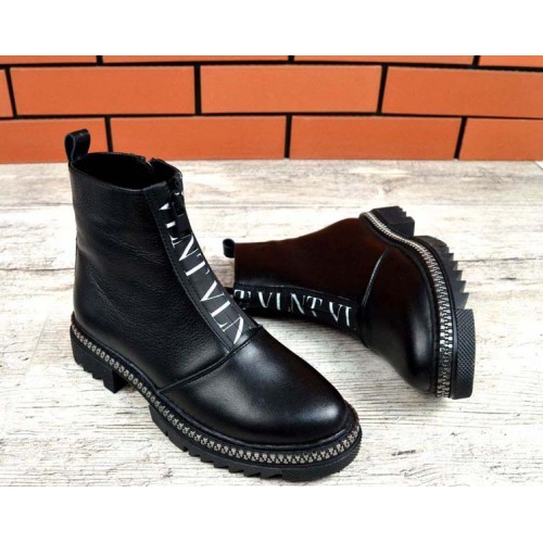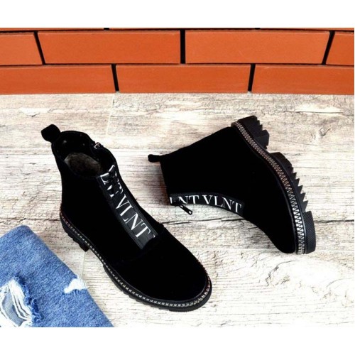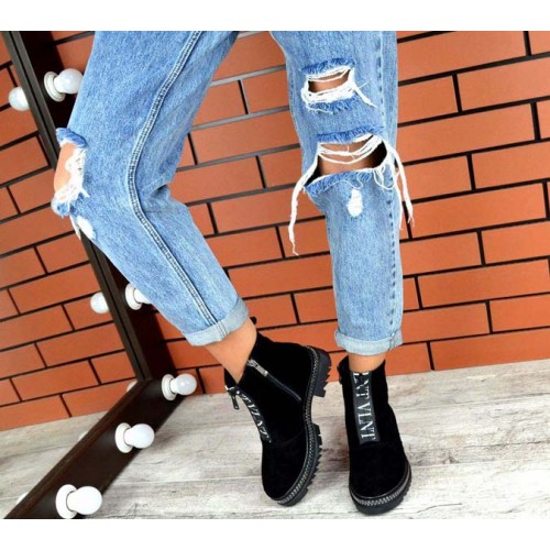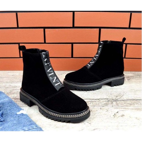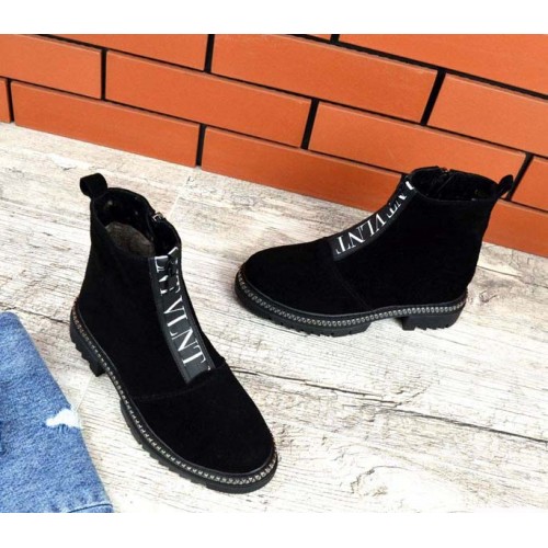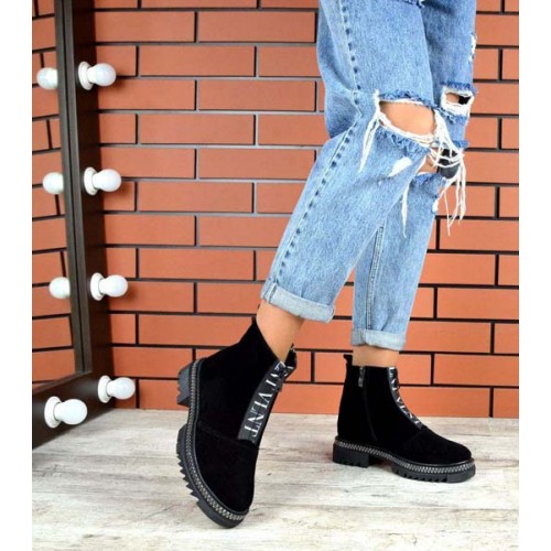 Купить качественные недорогие зимние ботинки женские кожа/замша, внутри натур.мех (густая набивная шерсть), 2 рабочие молнии, подошва 4/3 см, высота 14 см, цвет: черный в Харькове магазин фламода. Доставка по всей Украине. Интернет магазин flamoda.com.ua