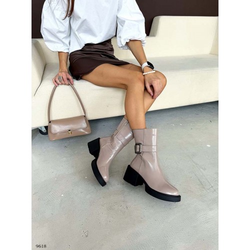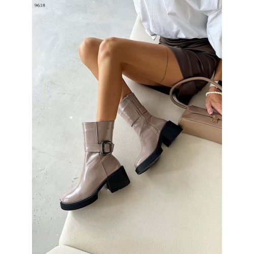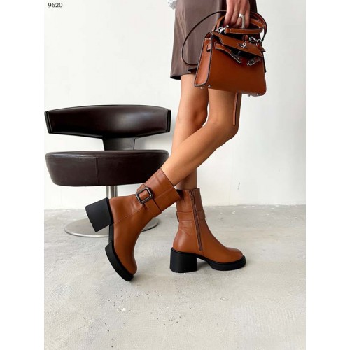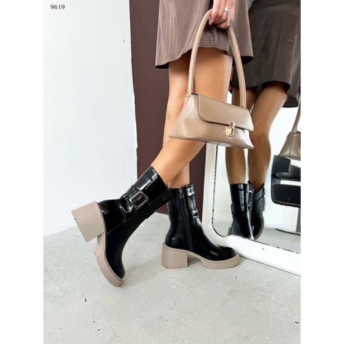 Женские ботинки на широком каблуке кожаные деми 9618ТОПС