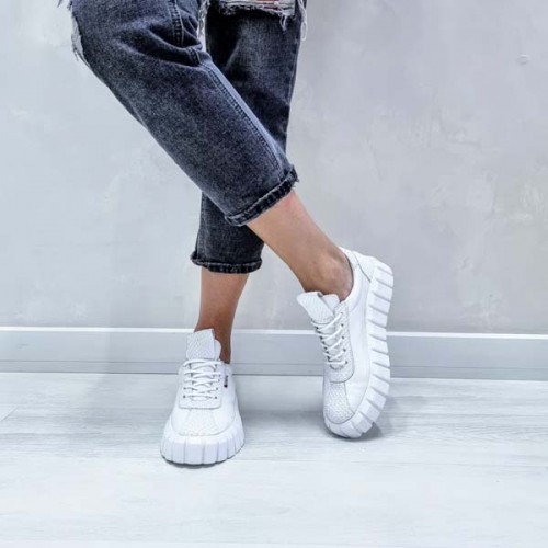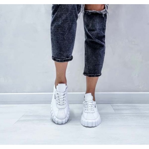 Купить качественные недорогие кеды женские Натуральная кожа со вставками из рептилии (тиснение); Подкладка: тонкий текстиль на поролоне с кожаной стелькой ; Подошва из полиуретана; Высота подошвы 2,5/ 3,5 см.; Цвета: белый в Харькове магазин фламода. Доставка по всей Украине. Интернет магазин flamoda.com.ua