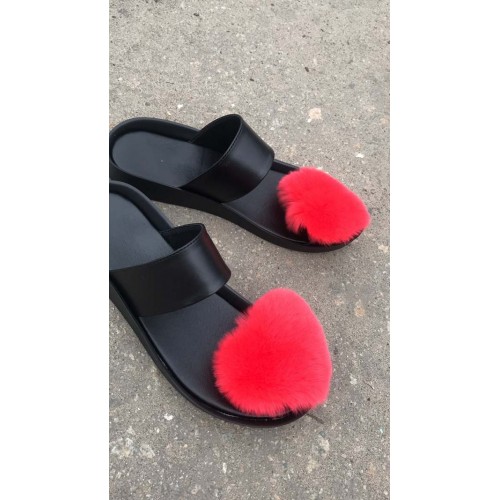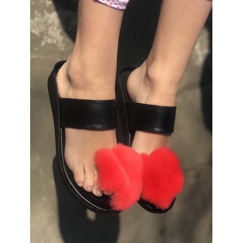 Купить качественные шлепанцы женские летние кожа/мех кролика черные в Харькове магазин фламода. Доставка по всей Украине. Интернет магазин flamoda.com.ua