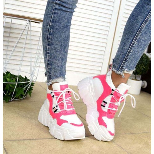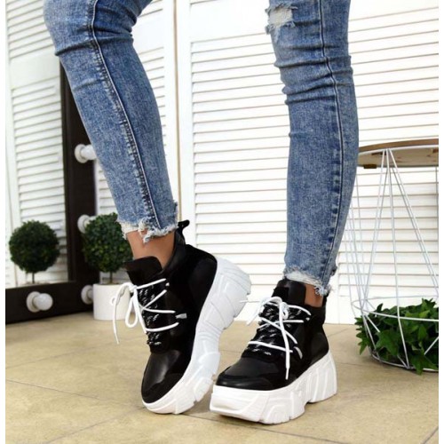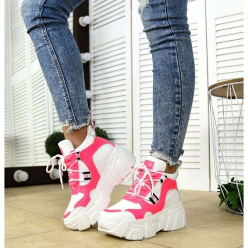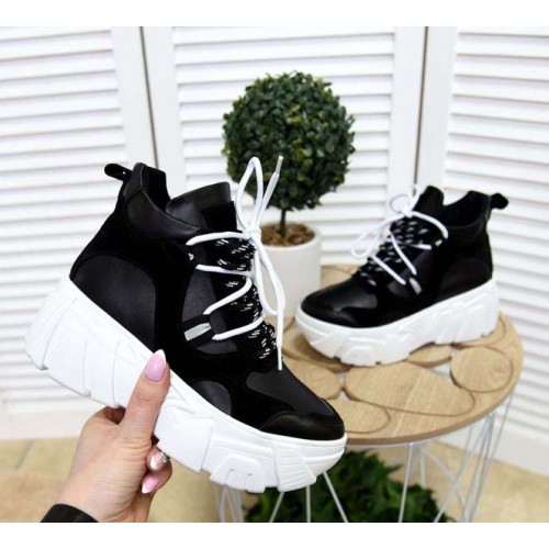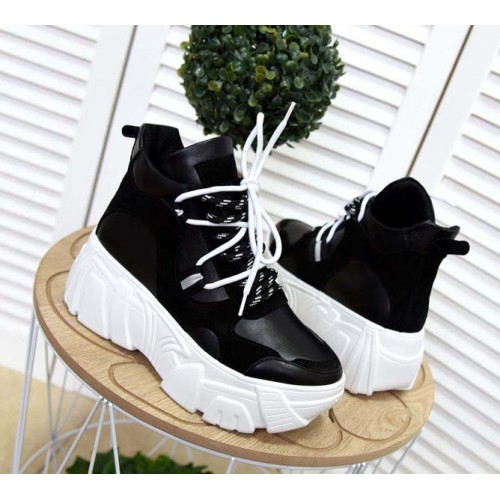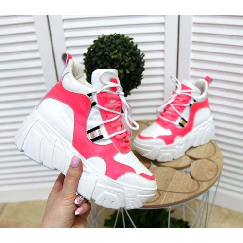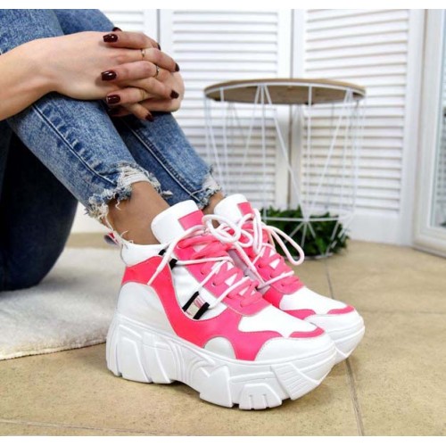 Купить качественные недорогие модные женские кроссовки на макси подошве натуральная кожа +замша, внутри текстиль, подошва 6,5/4 см, цвет: белый, черный, розовый в Харькове магазин фламода. Доставка по всей Украине. Интернет магазин flamoda.com.ua