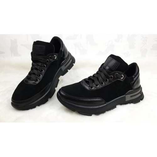 Женские кроссовки кожа+замша деми черные/белые 0033ЛЕКС