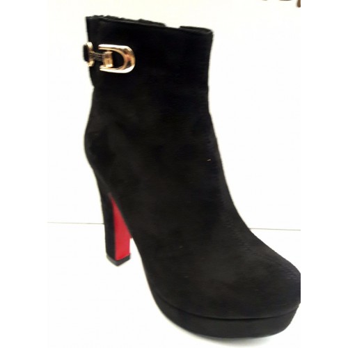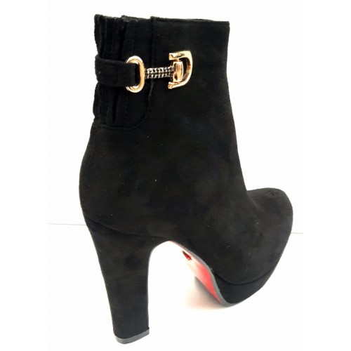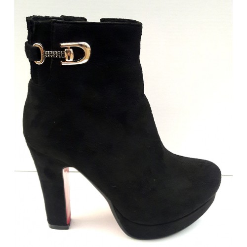 Купить качественные ботильоны ботинки стильные осень-весна замш черные на каблуке с пряжкой в Харькове магазин фламода. Доставка по всей Украине. Интернет магазин flamoda.com.ua