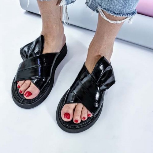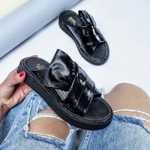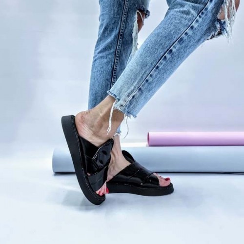 Купить качественные недорогие женские шлепанцы кожа наппа (наплак). Подкладка: натуральная кожа, Рант декорирован стразами. Материал подошвы полиуретан. Высота подошвы спереди 2 см., сзади 3 см в Харькове магазин фламода. Доставка по всей Украине. Интернет магазин flamoda.com