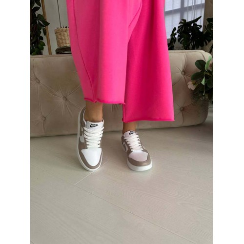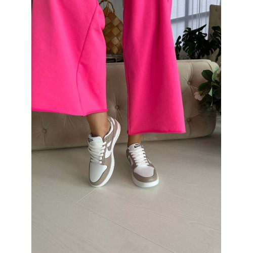 Кроссовки женские кожаные бежевые/черные Код NM КОР