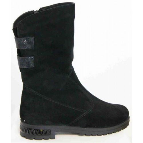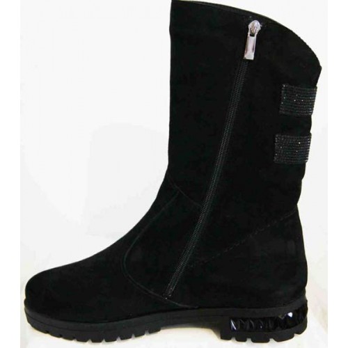 Купить качественные недорогие женские сапоги демисезонные замша, внутри байка, цвет: черный, большие размеры в Харькове магазин фламода. Доставка по всей Украине. Интернет магазин flamoda.com.ua