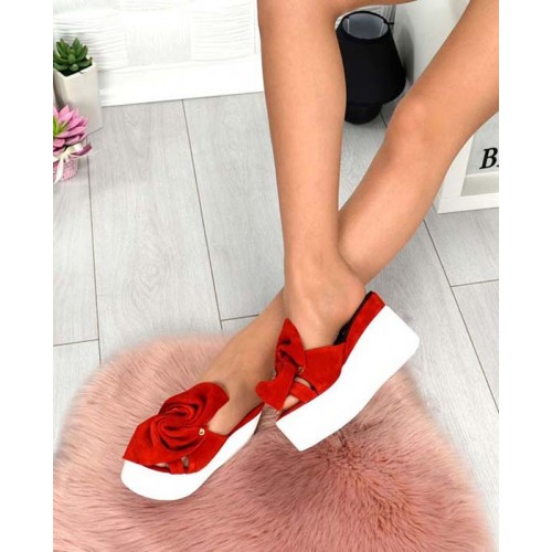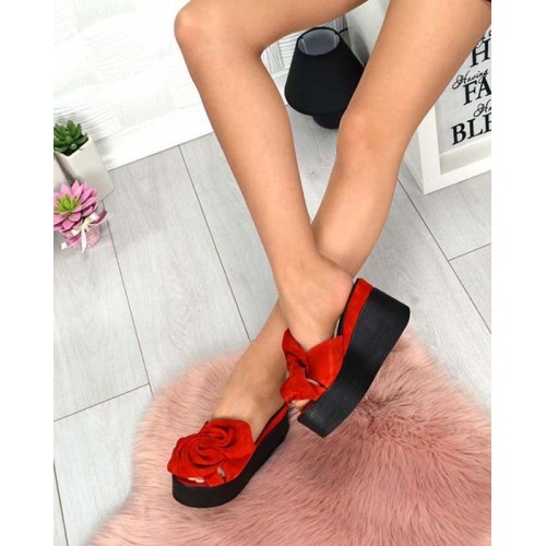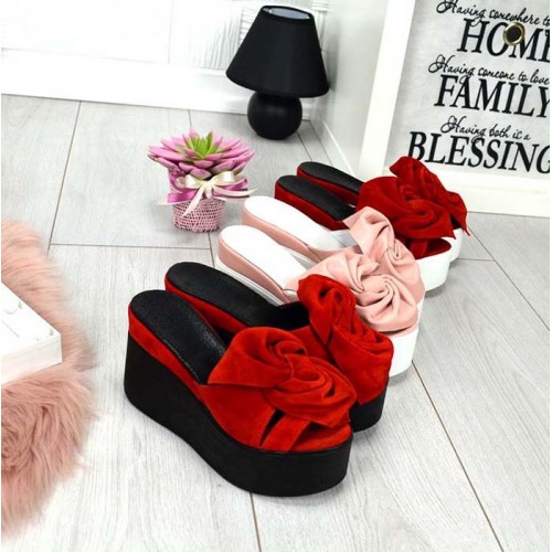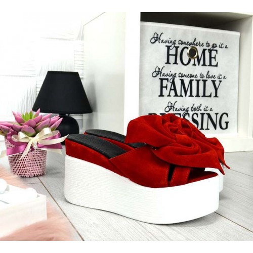 Купить качественные недорогие шлепанцы сабо женские кожа замша, стелька кожа, турецкая подошва, рельефная, платформа 4,5/ 9см, цвета: красный, пудра в Харькове магазин фламода. Доставка по всей Украине. Интернет магазин flamoda.com.ua