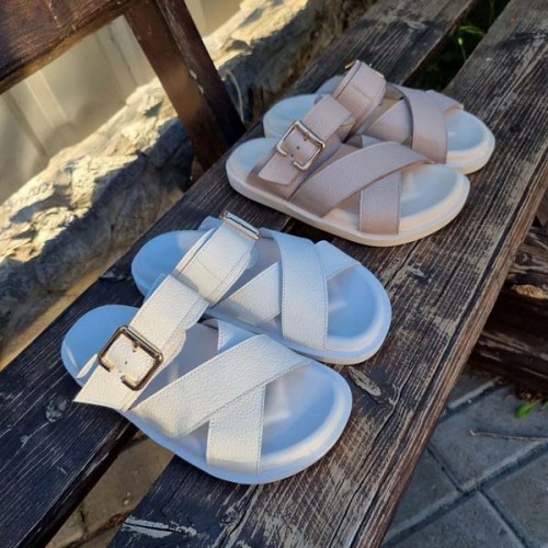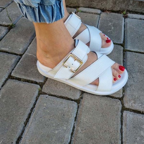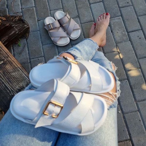 Купить качественные недорогие женские шлепанцы кожа флотар на пряжке. Подкладка: натуральная кожа. Подошва: полиуретан+ортопедическая стелька (полиуретан). Высота подошвы: 2,5 см спереди, сзади 3,5 см. Цвета: черный, белый, пудра, серый, визон в Харькове магазин фламода. Доставка по всей Украине. Интернет магазин flamoda.com.ua