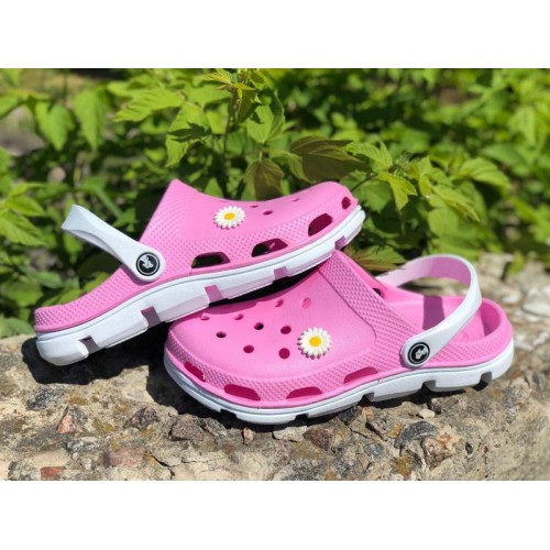 Женские кроксы белые/розовые 0442КФМ