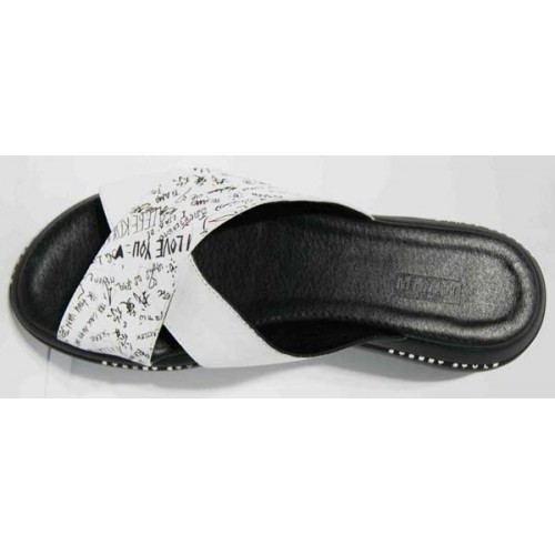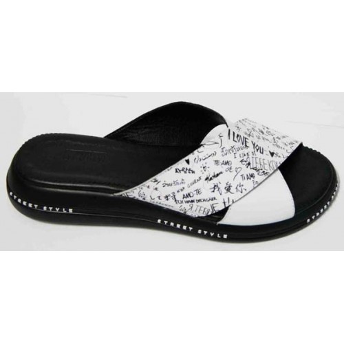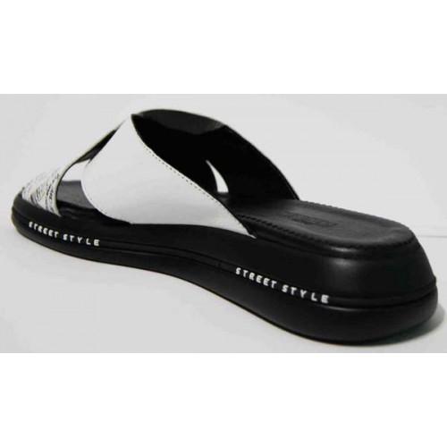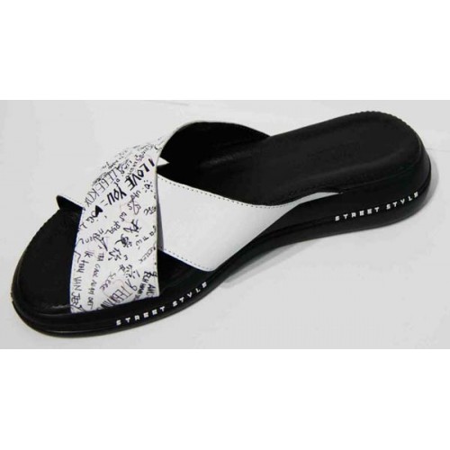 Купить качественные недорогие шлепки женские летние кожаные, внутри кожа, цвет: белый, черныйв Харькове магазин фламода. Доставка по всей Украине. Интернет магазин flamoda.com.ua