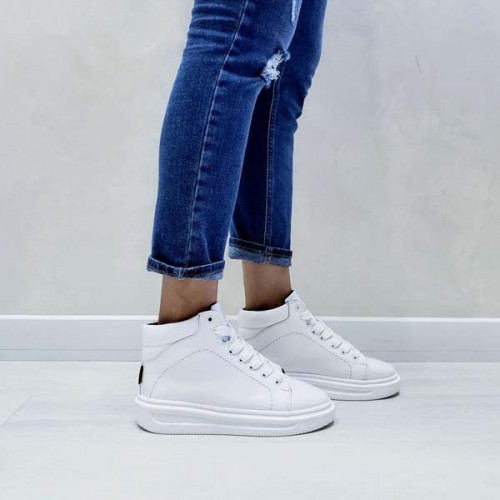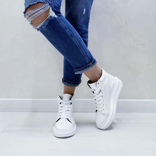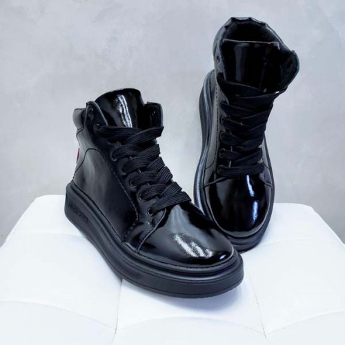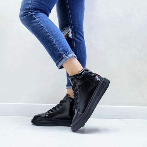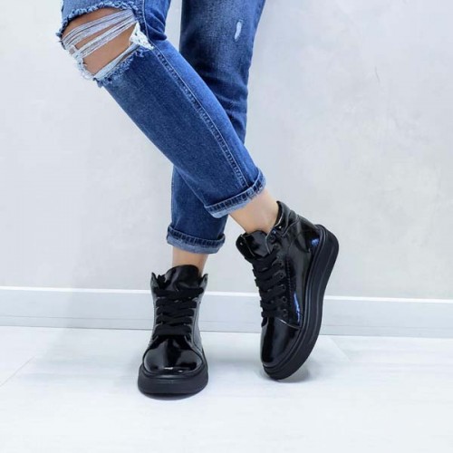 Купить качественные недорогие модные кеды женские лакированная мягкая кожа Наппа, внутри демисезон: байка, зима: полушерсть, цигейка (натуральная овчина) под заказ. Высота изделия(до подошвы) 9.5 см. Подошва из полиуретана, лёгкая, износостойкая высота 2,5-3,5 см. Цвет: белый, черный в Харькове магазин фламода. Доставка по всей Украине. Интернет магазин flamoda.com.ua