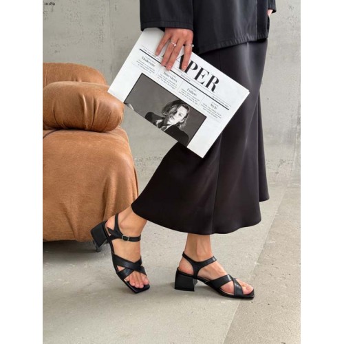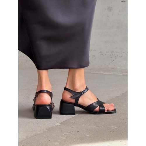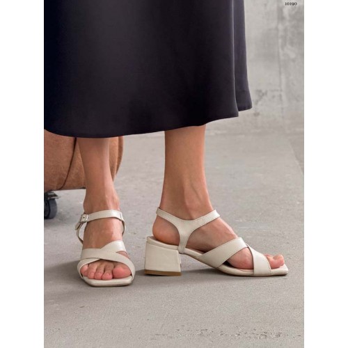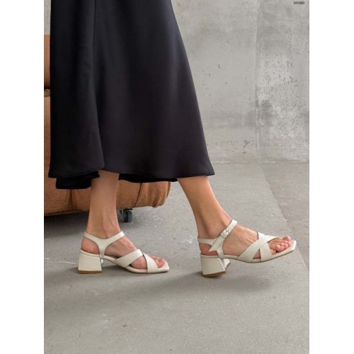 Босоножки на толстом низком каблуке кожаные 10187ТОПС