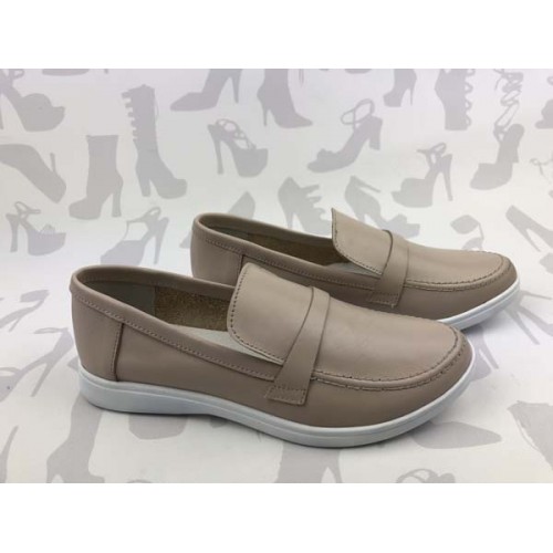 Купить качественные недорогие туфли женские лоферы без каблука натуральная кожа, внутри кожа, цвет: бежевый, коричневый в Харькове магазин фламода. Доставка по всей Украине. Интернет магазин flamoda.com.ua