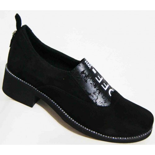 Купить качественные недорогие женские туфли замша+кожа, внутри кожа, цвет: черный в Харькове магазин фламода. Доставка по всей Украине. Интернет магазин flamoda.com.ua