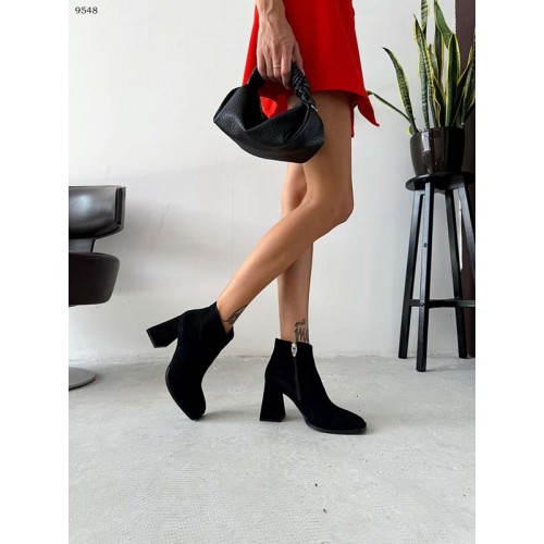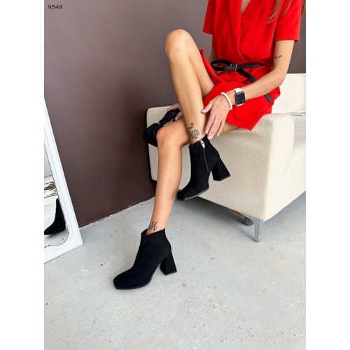 Женские ботильоны на каблуке деми замшевые и лаковые 9548ТОПС