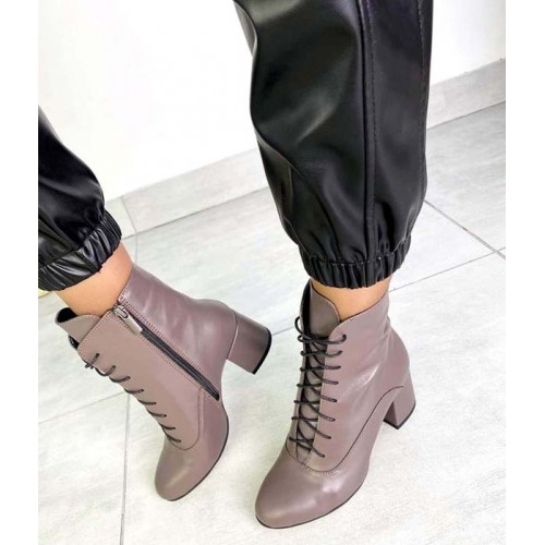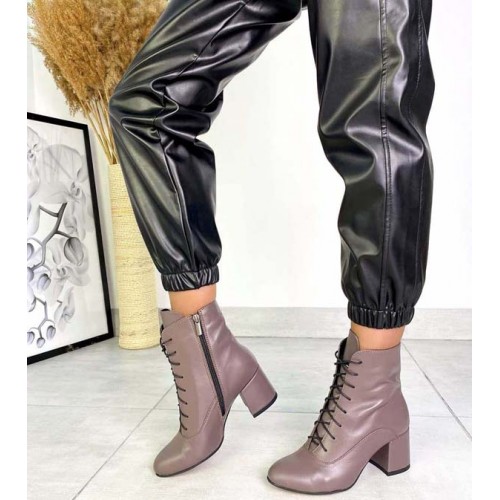 Купить качественные недорогие ботинки кожаные женские на обтяжном каблучке Натуральная кожа, подклад – флис, высота от пятки 14 см, каблук 6 см, ТОП качество, цвет: черный, темная пудра в Харькове магазин фламода. Доставка по всей Украине. Интернет магазин flamoda.com.ua