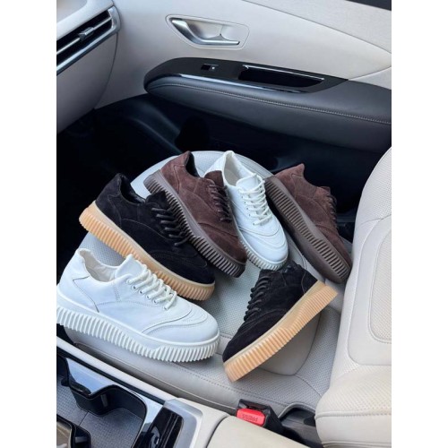 Кеды кожаные и замшевые женские черные, коричневые и белые 10567ТОПС