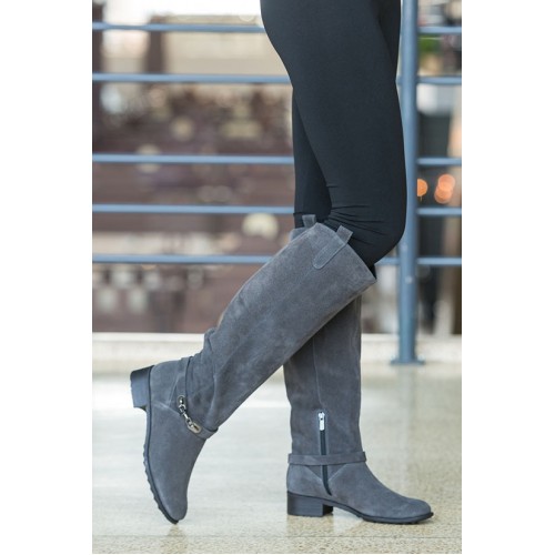 Купить качественные недорогие сапоги женские осень-весна/зима на небольшом каблучке (каблук 3,5 см, высота сапога 45-47 см до каблука), натуральная итальянская замша, подкладка: итальянская байка, зимний вариант евромех (мех по щиколотку полушерсть), цвета разные, фурнитура: темный никель, зима +100 грн, Размерный ряд 35 - 41 размер в размер, в Харькове магазин фламода. Доставка по всей Украине. Интернет магазин flamoda.com.ua