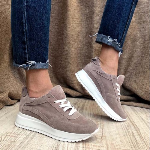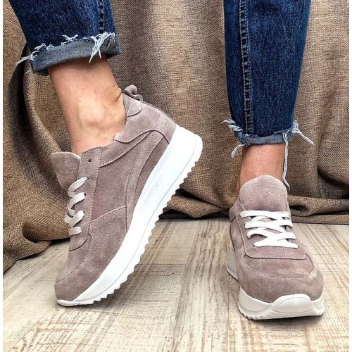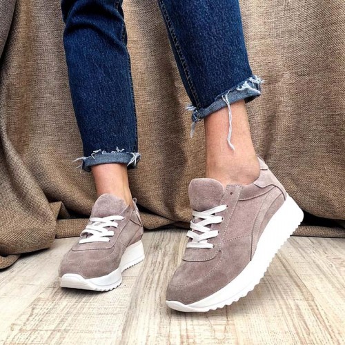 Купить качественные недорогие замшевые кеды женские натуральные, внутри кожаные бежевые в Харькове магазин фламода. Доставка по всей Украине. Интернет магазин flamoda.com.ua