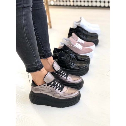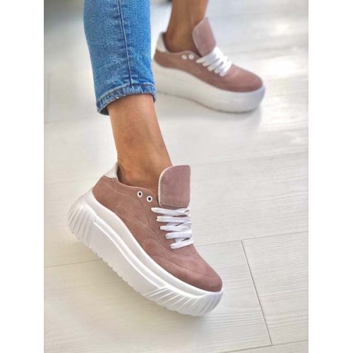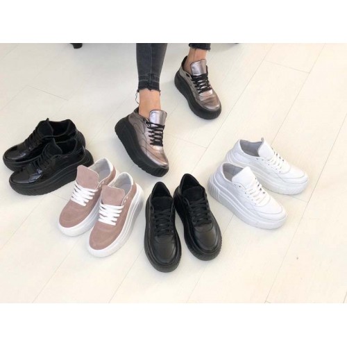 Купить качественные недорогие кроссовки на толстой подошве женские кожа/замша, внутри кожа, цвет: белый, черный, пудра, бронза в Харькове магазин фламода. Доставка по всей Украине. Интернет магазин flamoda.com.ua